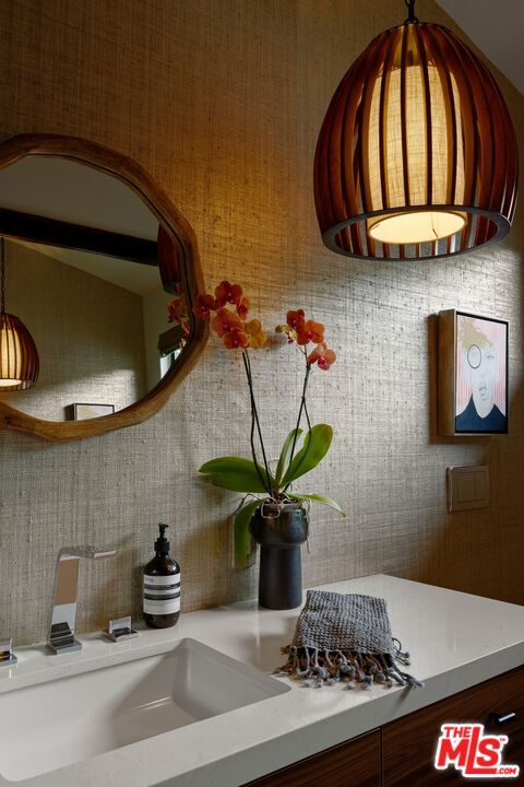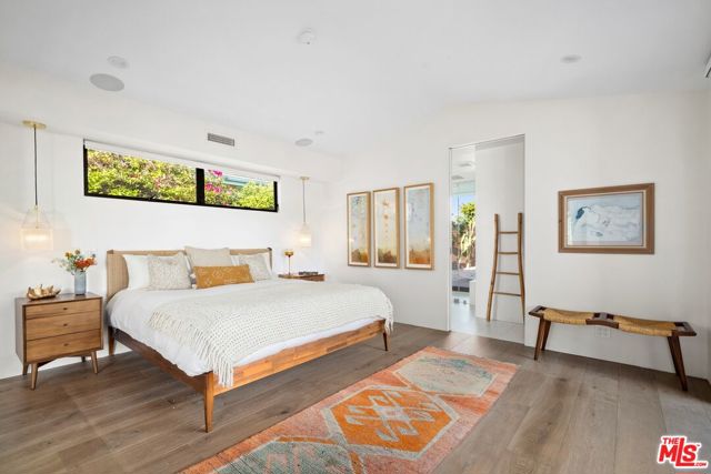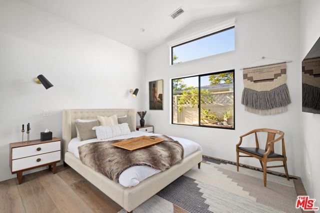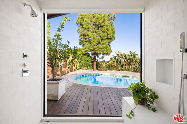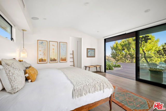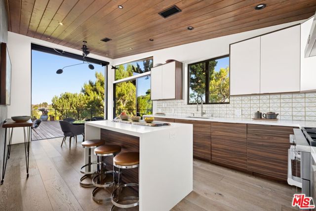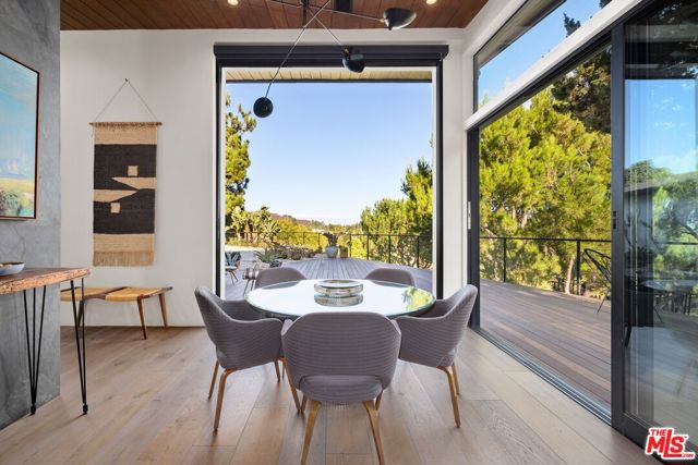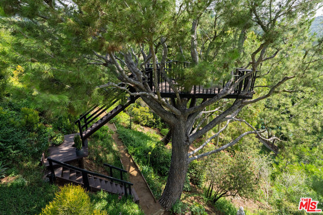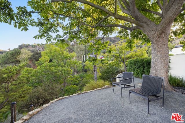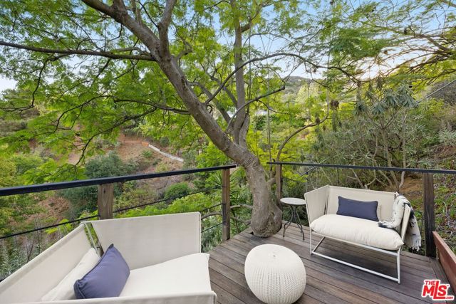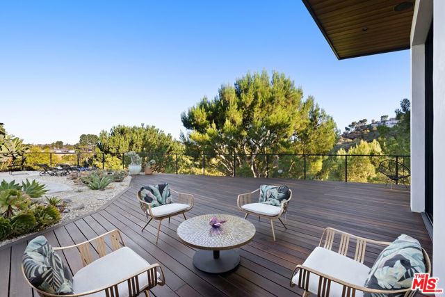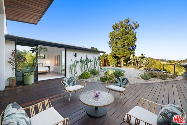Ultra-private and nestled in nature on almost half an acre, this beautifully updated single-story home sits at the end of a cul-de-sac in a lovely pocket of Laurel Hills, offering soaring city and canyon views. This 3-bedroom, 4-bathroom residence features a bright and open floor plan with stunning finishes, including Walnut cabinetry, French oak wood floors, and Miele appliances throughout. Designed for entertainment, the sun-soaked formal living room with fireplace and dining room boast incredible views and Fleetwood sliding glass doors with auto shades that open to the rear yard with a large pool. An Ipe wraparound deck, spanning over 1200 square feet, provides access to the main suite, guest suite, kitchen, dining, and living rooms. The main suite includes luxurious appointments such as a custom wardrobe and spacious bath. An additional 2 en-suite bedrooms, powder room, laundry, and 2-car garage with Tesla charger and private trail complete the home. In close proximity to Beverly Hills and The Valley and has access to the Wonderland School District.