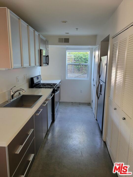 Beautiful and pet-friendly 1-bedroom apartment in the heart of Hollywood, just one block from Paramount Studios and a 5-minute walk to the historic, restaurant- and store-lined Larchmont Blvd. The bathroom has been upgraded to feature a standing shower with a bench and glass doors. The kitchen is fully equipped with a microwave, oven/stove, dishwasher, and refrigerator. Central A/C is controlled by a Nest thermostat. The spacious living room/dining area includes a gas fireplace for a cozy touch. Sliding doors lead to a large (200 sq ft) private patio with a side gate for convenient additional access to the property. The apartment is located on the first-floor corner of a condo building. The neighbors are quiet and friendly, contributing to a community-like atmosphere among residents. The building features a gated underground parking garage, with two designated spaces for this unit, several guest spaces, and two electric car chargers.