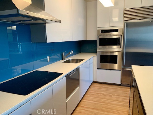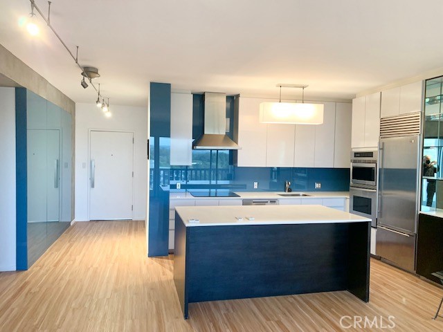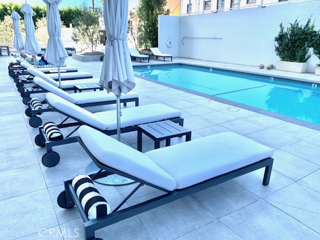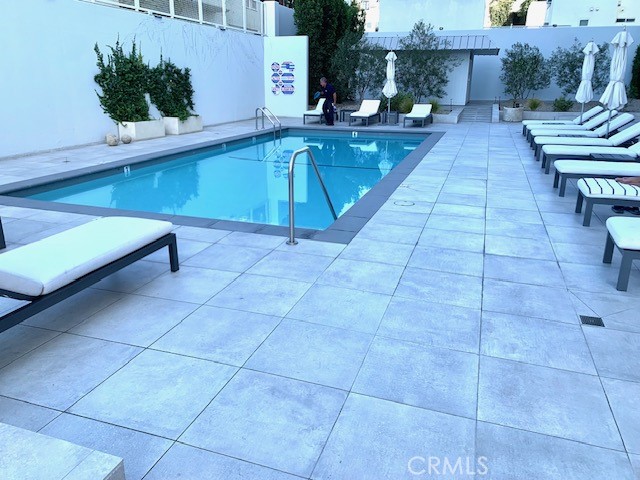 999 West Doheny is a Mid-Century Modern building located one half block below Sunset. This west facing unit has city lights view from unit and the balcony, which runs the entire length of the condominium. Features include an updated sleek kitchen with built-in stove, refrigerator, microwave and wine cooler. Remodeled bath has large shower. Electronic blinds with blackout blinds in bedroom. There is a small den which could be an office or large closet.