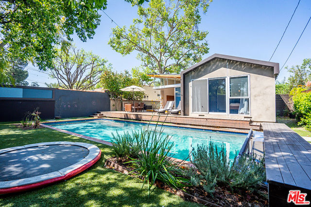 NO SHORT TERM LEASE. Prime location in studio City. 3+2 bungalow w/ pool! Modern and cool yet cozy with a mid century vibe.  Whole house water softener included. Chefs' kitchen, marble tops, european cabinets, enormous glass pocket doors for indoor-outdoor living. Have your own resort spa, soaking tub, rain shower & heated floor. Freeway 170 and 101 close without all the noise. Enjoy Studio City restaurant row at your fingertips.  Must come to be amazed! Hurry, it will move fast! Tenant pays all utilities (gardener &Pool)