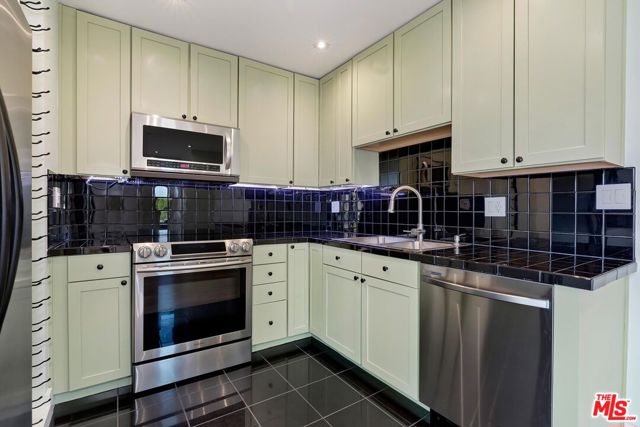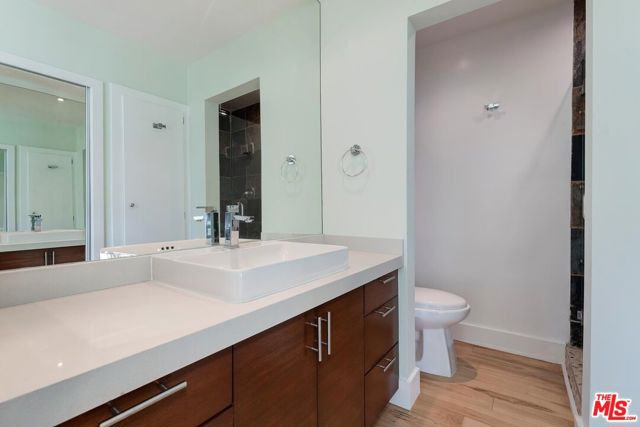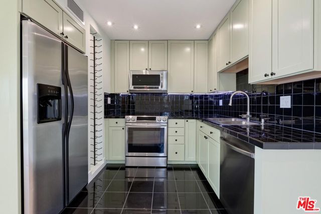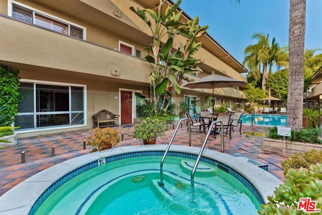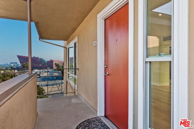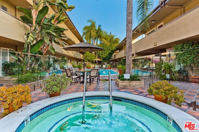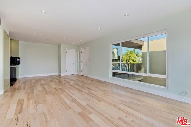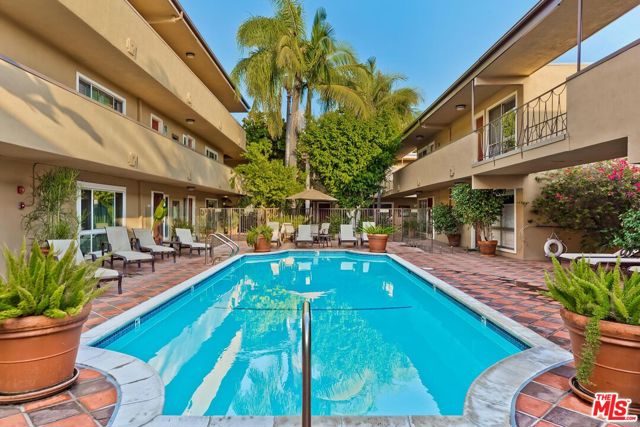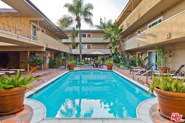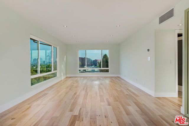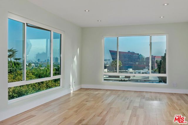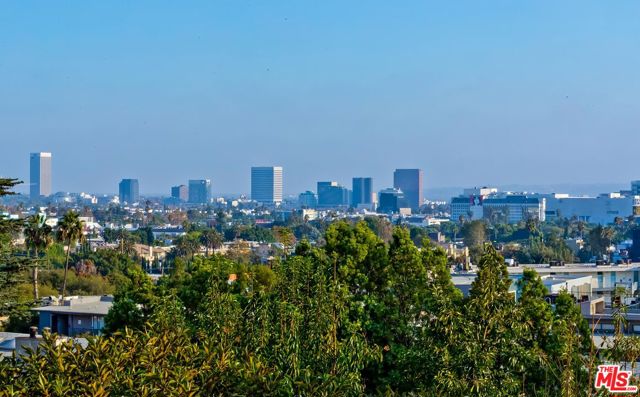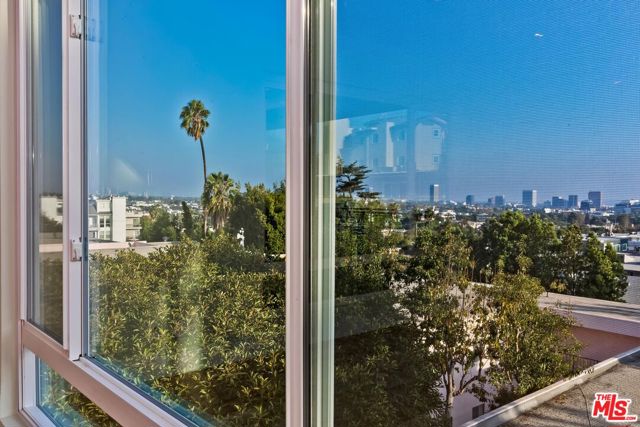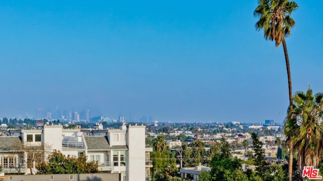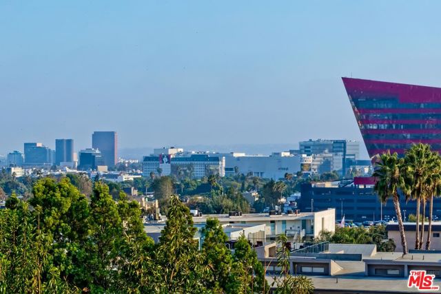 This top-level end unit showcases sweeping views of the iconic Pacific Design Center and the glittering city skyline from nearly every room. Perched on a hillside between fashionable Santa Monica Boulevard and the famed Sunset Strip, this home captures the best of vibrant city living and serene retreat. Recently updated, the unit combines modern comfort and timeless style. The light-filled living room features expansive windows that frame the skyline like a work of art, complemented by engineered maple hardwood floors that add warmth and elegance throughout. The black-tiled open concept kitchen is both stylish and functional, complete with newer stainless steel appliances. The primary suite offers a peaceful escape, illuminated by natural light. Spacious closets add generous storage while enhancing the airy feel. Both bathrooms have been thoughtfully upgraded with modern, sophisticated finishes. Additional features include an in-unit washer and dryer for added convenience. On the ground floor, a grand lobby opens to a lush resort-style courtyard featuring a large heated pool, spa, and shaded dog walk area, offering an ideal blend of luxury, comfort, and quintessential California lifestyle.