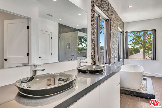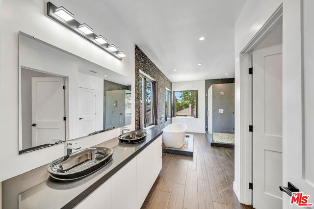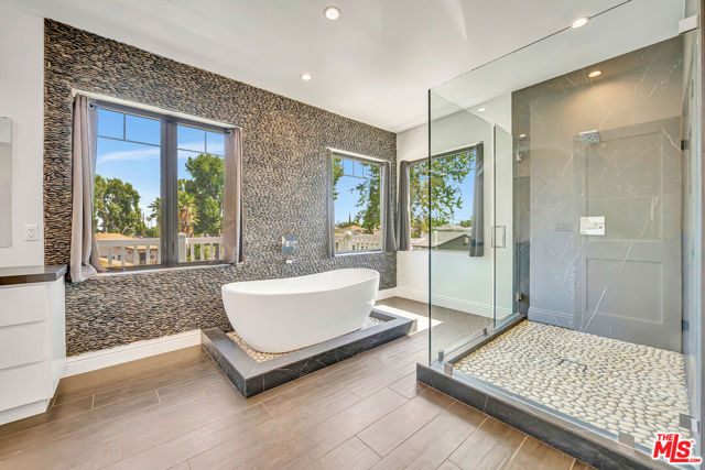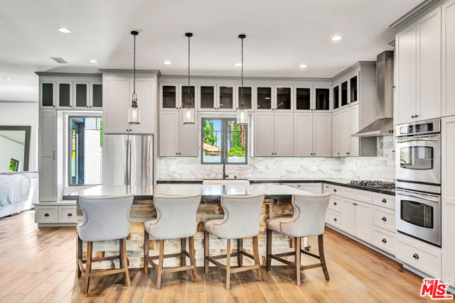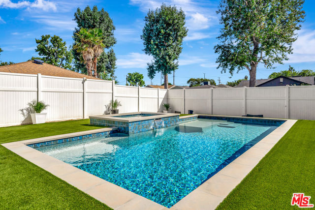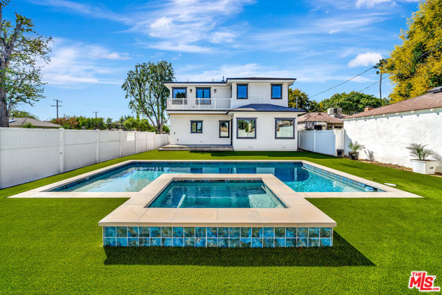 Experience the perfect blend of modern luxury and comfortable living in this stunning two-story home. Step inside to discover open, sun-filled spaces with elegant wood flooring, high-end finishes, and thoughtful details throughout. The gourmet kitchen boasts sleek cabinetry, a large island with seating, stainless steel appliances, and a cozy dining area ideal for family meals and entertaining friends. Retreat to the spacious living room, where natural light pours in through multiple windows, offering relaxing views of the neighborhood and seamless access to the outdoors. Upstairs, unwind in the serene primary suite with a designer en suite bathroom featuring a contemporary soaking tub, double vanity, walk-in shower, and ample storage. Luxurious closet space awaits to keep everything organized with built-in shelving and drawers. Step outside to your private oasis a sparkling pool and spa set amidst manicured turf and a large private white-fenced yard. Perfect for lounging, entertaining, or family fun, with a beautiful balcony providing poolside and tree-filled views. The home's inviting curb appeal is matched by its versatile garage and welcoming entrance. This meticulously maintained residence combines sophistication and warmth, offering the ideal backdrop for memorable moments and everyday comfort. Welcome home to a space where every detail is designed for living beautifully.