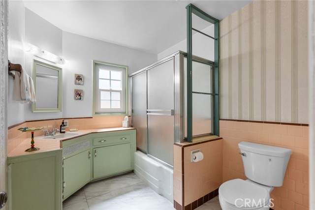 The primary suite serves as a peaceful retreat, while the secondary bedroom is equally versatile—ideal as a guest room or home office. Both bathrooms retain a nostalgic charm while offering plenty of functionality..