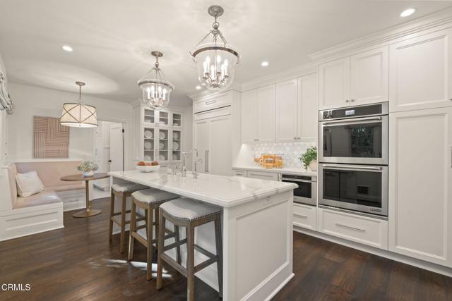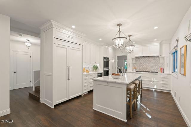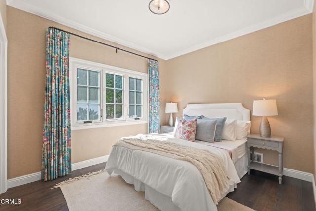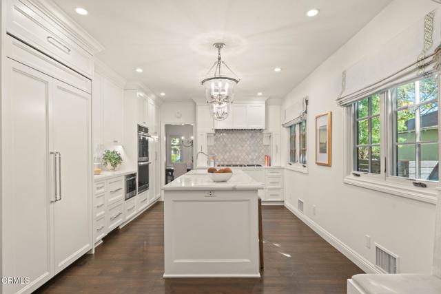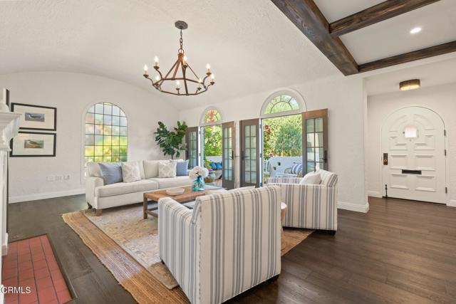 Welcome to 1735 S Los Robles Ave, a meticulously updated Spanish Colonial Revival set in San Marino's charming Mission District. Built in 1925, this historic character home combines stunning architecture, enduring craftsmanship, and beautifully renovated interiors to create the perfect sense of modern comfort. A private front courtyard, hidden behind lush greenery and a garden wall, offers a magical setting for charcuterie and wine with friends. Inside, arched doorways, exposed beams, Spanish tile, and wrought-iron detailing imbue the home with rich character. Filled with radiant natural light, the elegant living room includes 2 sets of French doors to the courtyard and a grand fireplace. Whether hosting guests, unwrapping holiday presents, or doing homework, this is a treasured backdrop. Nearby, the newly-renovated dream kitchen is the picture of refined beauty with Quartz countertops, custom cabinetry, and top-of-the-line appliances. A generous island with prep sink offers space to gather and uncork a favorite vintage from the 150 bottle wine cellar below. Among the home's many highlights is the all-season, open-air family room. Finished with Spanish terracotta tile, it's equally suited for shaded poolside snacks or firelit movie nights when the air turns crisp. A first-floor bedroom easily doubles as a home office while, upstairs, 3 additional bedroom suites each feature a beautifully renovated bathroom. Out back, lush landscaping wraps the sparkling pool and spa in privacy, creating a serene escape on sun-filled days. With the Mission District's quaint cafes, boutiques, music lessons, and celebrated pizza/ice cream shops just around the corner, 1735 S Los Robles Ave offers the perfect blend of timeless charm and modern ease in one of San Marino's most beloved neighborhoods.