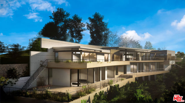 Stunning View Lot Above Trousdale Estates Perched high on a private gated road, this extraordinary view lot comes RTI-Ready to Issue with all approved plans, studies, and reports included. Designed by world-renowned architect Gerhard Heusch of Heusch Inc., this architectural masterpiece offers over 7,000 sq. ft. of living space and an additional 5,760 sq. ft. of outdoor living areas. The proposed Architectural estate features 6 bedrooms, 8 baths, a 3-car garage, pool, spa, home theater, gym, and wine cellar, all seamlessly integrated with expansive decks for effortless indoor-outdoor living and entertaining. Enjoy breathtaking panoramic views stretching from the city skyline to the Hollywood Sign and beyond. A rare opportunity to own a piece of architectural artistry in one of Beverly Hills PO's most coveted and private enclaves.