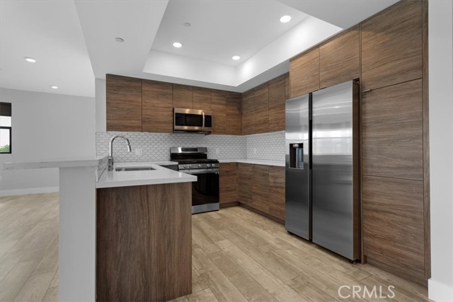 This fully remodeled unit features stainless steel kitchen appliances (refrigerator, microwave, dishwasher, oven),  quartz countertops,  walk-in closet, triple pane  windows and fireplace. This unit also features curved windows with a beautiful architectural design.