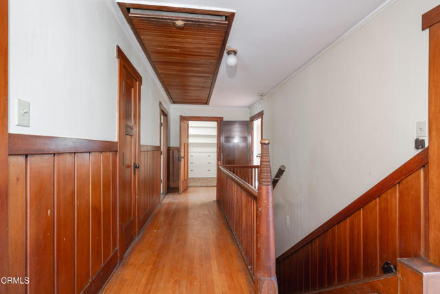 Welcome to 237 West State Street, built in 1912 as noted in the National Register of Historic Places. This two-story English Craftsman style residence, located in the Pasadena Avenue Historic District, was designed by architect Frederick Louis Roehrig and built by Louis Pomeroy. It sits on a raised berm on the north side of State Street with a primary side-gabled roof with open eaves, exposed rafter tails and wide, exposed roof rakes with extended purlins. There are a pair of two-story, front-facing bays at the east and west ends of the front elevation. The western bay has a shallow hipped roof with boxed eaves, a wood French door centered on the first level, and a ribbon of four six-pane wood casement windows. There is an applied trellis on this portion of the façade. The eastern bay is a square, through-cornice shed-roofed wall dormer with a ribbon of four wood casement windows at both the first and second levels. An inset entry porch between these two bays has a small flared shed roof and a brick pad; the skylight in the hallway floods the space with natural light; the single-leaf door is wood with twelve inset panels and a wooden screen door. There is a built-in wood bench on either side of the entry porch.  Utilities have been off for an extended period of time and will not be activated for inspections. Come tour this significant historical property in the heart of Pasadena!