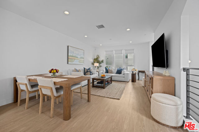 Bright Corner Unit in W. Toluca Lake!  Experience modern living at its finest in this stylish corner-unit single-family home located in the vibrant W Toluca Lake and close to the NOHO Arts district. This home offers an abundance of natural light through expansive windows and a thoughtfully designed open layout that blends comfort and sophistication.  The entry level offers a gated courtyard entrance to welcome your guests and direct access to a two-car garage, plus a spacious bedroom with an en suite bath, ideal for guests, a home office, or gym.  On the second floor, enjoy the airy open-concept living space that's perfect for entertaining. The modern kitchen includes a large quartz breakfast island, GE stainless steel appliances, and custom cabinetry. The kitchen opens into the dining area, and living room, all surrounded by windows that fill the home with sunlight from three sides of the home.  Upstairs, the third floor offers a secondary bedroom with en suite bath and a serene master bedroom with a spacious master bathroom, dual sinks, and a walk-in closet.  Ready to relax?  Head up to the rooftop deck to enjoy beautiful city views and a gas hookup for BBQs, perfect for relaxing or entertaining under the stars.  Situated just minutes from Valley Village, Burbank Airport, and Griffith Park, this bright and modern home combines effortless style with unbeatable convenience in one of the Valley's most sought-after neighborhoods.