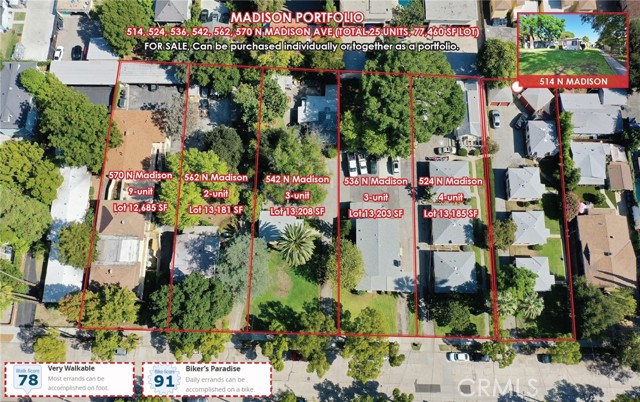 4 Single-story Bungalows several blocks north of Old Town Pasadena, Large ±12k SF Lot, 4 detached garage parking, Highly desirable layout, Easy to Rent and Manage. 514-520 N Madison Ave, a bungalow style 4-units Single story apartment in the City of Pasadena. Situated only several blocks north of Old Town Pasadena, 2 blocks west of Los Robles Ave, and just within walking distance of many dining, shopping, and other attractions in Pasadena. It is situated on a quiet residential street surrounded by single family houses. This property is being sold together with 5 adjacent buildings to its north that are own by same seller – can be purchased together or individually (526 N Madison, 536 N Madison, 542 N Madison, 562 N Madison, and 570 N Madison).