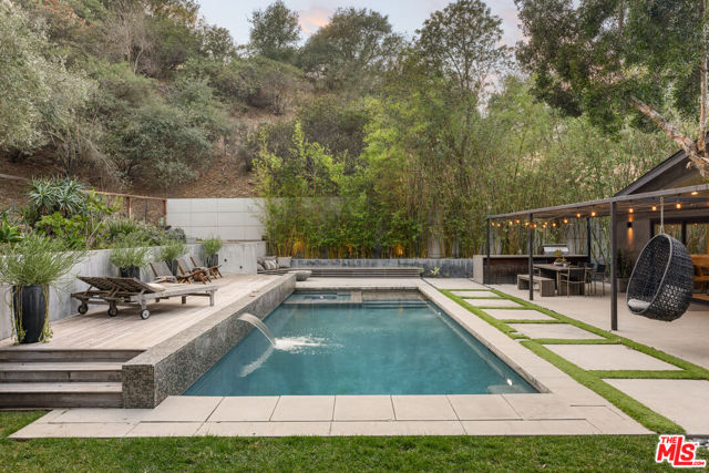 A Royal Oaks adjacent dream.  Canyon privacy yet easy to access on almost a half acre of land in prime Sherman Oaks/Mulholland Dr. Pride of ownership shines in this home that has been lovingly updated and meticulously cared for by the current owners.  White oak floors, built-in appliances, chef's kitchen, grand windows, expansive floorplan, fabulous millwork, cozy nooks with high end design finishes throughout and a heated pool and hot tub to soak in.  All bedrooms have en-suite bathrooms.  The lounging, dining and entertaining opportunities on this property are endless.  Straddling the Westside and the Valley off the 405 and Mulholland, this location is perfect for all renters alike looking to get to work, shopping, restaurants or schools easily.  The pictures of this pool side oasis speak for themselves.  Partial or unfurnished options available.