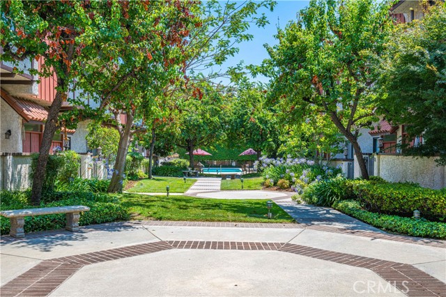 Additional features include recessed lighting, a brand-new central air and heating system, an attached garage with storage cabinets, an electric car charger, and a charming front patio. Residents enjoy community amenities such as a swimming pool, picnic area, courtyard, and beautifully landscaped grounds.