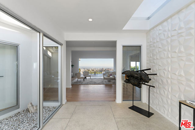 BREATHTAKING PANORAMIC CITY AND OCEAN VIEWS define this spectacular modern residence, privately perched at the top of BHPO. Behind a gated drive-on motor court, this single-level architectural gem has been designed for today's lifestyle - open, sophisticated, and flooded with natural light. The dramatic Great Room is the heart of the home, with soaring ceilings and expansive pocket glass doors that disappear to reveal a seamless indoor/outdoor flow and uninterrupted skyline views stretching from downtown to the Pacific. Every space in the home was designed to maximize the incredible vistas and sense of privacy. A true entertainer's dream, the Great Room opens to a vast deck overlooking the city below ideal for dining, lounging, or hosting gatherings under the stars. The sparkling pool and spa sit perfectly positioned to capture both the sun and the view, creating a resort-like experience right at home. The custom kitchen is professionally equipped with stainless steel appliances, sleek cabinetry, and designer finishes. Whether cooking for two or catering for twenty, the flow and layout are effortless. The open-concept design continues throughout, with natural hardwood floors, designer lighting, and a curated selection of custom furniture and furnishings included in the lease. The luxurious primary suite is a private sanctuary with walls of glass that open directly to the pool and terrace. The spa-quality bathroom features a steam shower for two, double vanity, and elegant finishes, along with a spacious walk-in closet. Each additional bedroom is generously sized and beautifully appointed, with flat-screen TVs and thoughtful details throughout. The home's crisp, modern aesthetic is complemented by warm, natural materials and an abundance of sunlight at every turn. Perfectly situated at the end of a private road, this property offers the best of both worlds - peaceful seclusion and effortless access to Beverly Hills, the Sunset Strip, and the Valley. A rare and extraordinary lease opportunity. Enjoy unparalleled views, resort-style living, and the ultimate expression of modern luxury. Must see!