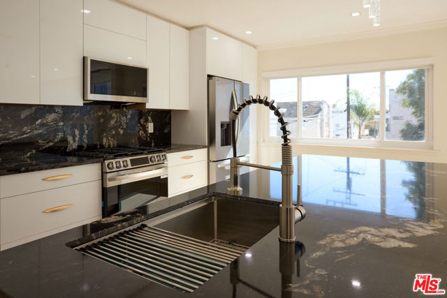Modern and secure, this newly renovated 2-bedroom, 2-bath apartment features an exceptionally sunny southern exposure. The kitchen has all newer modern appliances, a new washer-dryer, and wood flooring. The primary bedroom has an en-suite bathroom. Located just off Wilshire, the apartment is around the corner from Trader Joe's, less than 500 feet from Whole Foods, and just a few blocks from your morning smoothie at Erewhon. Easy access to UCLA's Santa Monica Medical Center and Providence Saint John Health Center, as well as the beach and all that the west side has to offer. One parking space is provided behind the building.