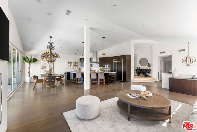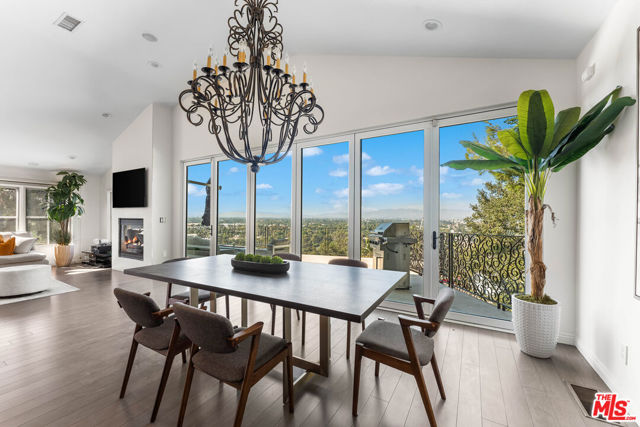 Perched in the tranquil hills of Studio City, this exceptional residence offers incredible privacy, bright, open living spaces, and stunning panoramic views. A dramatic entry leads you to a light-filled main level featuring an expansive open-concept living room, dining room, and kitchen, with soaring ceilings and walls of glass overlooking verdant vistas. The impeccably designed kitchen boasts Caesarstone countertops, stainless steel appliances, generous island seating, and ample cabinet space. Step through the adjoining dining room's glass bi-fold doors onto a sprawling terrace featuring a built-in fire pit and unobstructed valley and mountain views. This outdoor dining and lounge space is an idyllic setting for morning coffee and sunset gatherings. Downstairs you'll find the sumptuous primary bedroom, which features an abundance of windows, a fireplace, sliding glass doors that open to a balcony with tree-top views, a spa-inspired en-suite bathroom, and a huge custom walk-in closet. The primary suite also offers a private BBQ patio and an additional deck with a swim spa hot tub, creating a true resort-like experience at home. The home's lower level provides versatile living space with a spacious family room opening to its own balcony, a gym, a steam shower, and a bonus room. Additional features include a lushly landscaped terraced yard, a 2-car garage with direct access to the home, surround sound, a security system, and a water filtration system. This home feels like a secluded sanctuary, while perfectly located just moments away from countless incredible restaurants, shops, and markets on Ventura Blvd, and nearby Tujunga Village. Available furnished or unfurnished. Minimum 13 month lease term.