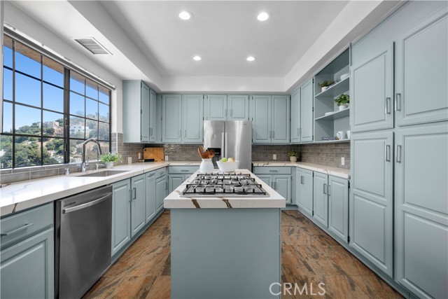 Tucked away in the hills above Studio City, this fully updated hillside home offers breathtaking canyon views from every room. Double doors welcome you into an open concept floor plan that features a remodeled kitchen equipped with stainless steel appliances and a living/dining room that’s highlighted by soaring vaulted ceilings, a gorgeous stone fireplace and multiple sliding glass doors that open to the balcony. Downstairs, three generously sized ensuite bedrooms each have a sliding glass door leading out to the lower level balcony. The primary suite boasts a cozy fireplace, ample closet space and a renovated bathroom, complete with a soaking tub, large shower and double vanity. Outside, the backyard is a blank canvas, waiting to be transformed into your personalized outdoor oasis. Additional amenities include high ceilings throughout, a private front patio and attached two car garage with laundry. Situated in Coldwater Canyon, this excellent South of the Boulevard location allows for easy access to both the Valley and Westside, is within the sought-after Dixie Canyon School District and down the street from Harvard-Westlake.