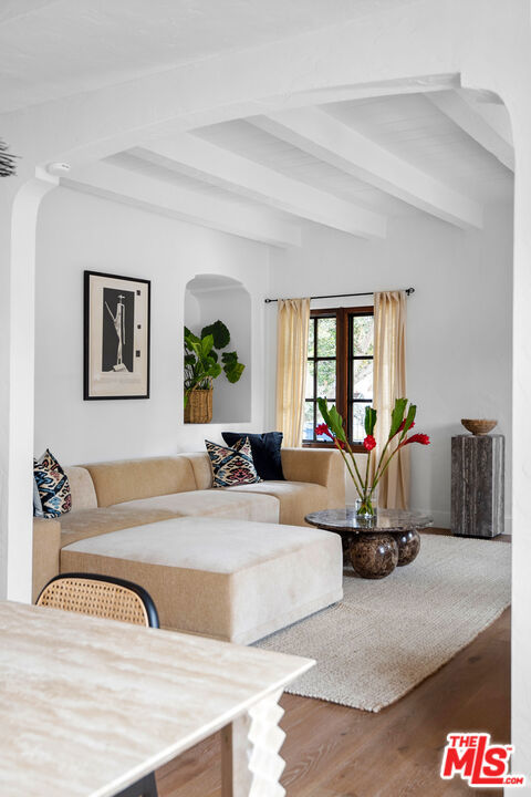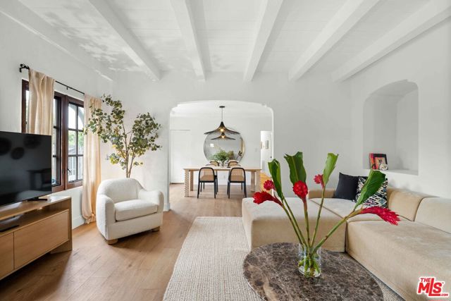 Both units will be delivered VACANT at close of escrow! Updated side-by-side Spanish duplex PRICED TO SELL! With expansive grassy park-like yard. Mature landscaping in protected gated front yard. Both units will be delivered VACANT at close of escrow. Charming living room with pitched beamed ceiling, deep windows, fireplace, double doors to front yard. Living room opens to dining room, which opens to kitchen. Kitchen has stone counters, SS appliances, including microwave, fridge/freezer, and dishwasher drawer. Laundry room off the kitchen with side door to yard. Primary bedroom feels like an oasis with a luxurious spa-like bath with tub and shower, and access to yard. Second bedroom and charming bathroom in owner's unit. Second unit has separate entrance and sunshine filled open living room and dining room, handsome wood kitchen and adjacent laundry room, one bed and one bath. Extra large backyard with hardscape and grassy area, pergola area. Two one car garages plus office with glass doors to yard. Possible to deliver both units vacant. Amazing central location close to The Grove and shops/restaurants on Beverly, Melrose, etc.