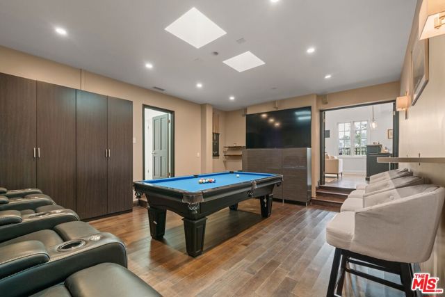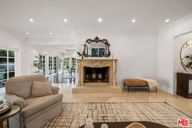 Situated on a quiet street in prestigious Trousdale Estates, this gated contemporary residence offers refined luxury and effortless indoor-outdoor living on nearly one-third of an acre of lush, tropical grounds. With over 5,000 square feet of living space, the home delivers scale, privacy, and a true resort-style experience rarely available for lease. Thoughtfully designed with an open, flowing floor plan and abundant natural light, the residence features six bedrooms and six and a half baths. The main level is ideal for comfortable living and entertaining, offering four en-suite bedrooms, including an expansive primary suite, along with formal living and dining rooms and a seamless connection between the kitchen, breakfast area, and den. This functional layout allows for easy single-level living while still providing generous space throughout.The first-floor primary suite serves as a private retreat, complete with an oversized walk-in closet and spa-style bath featuring a Jacuzzi soaking tub with jets, a separate oversized shower, and dual vanities. French doors open directly to the backyard, connecting to the pool and gardens. A chef's kitchen anchors the home, highlighted by a large island with a 5-burner Wolf range, custom cabinetry, and ample counter space. The gourmet kitchen opens to a sunny breakfast room and flows into a spacious family room/den with a fireplace, bar, and surround sound system. The gourmet kitchen opens to a sunny breakfast room and flows into a spacious family room/den with a fireplace, bar, and surround sound system, ideal for everyday living and entertaining. The home also features three fireplaces in the formal living room, den, and dining room. Upstairs, two generously sized bedrooms share a large bath, offering flexibility for guests, a home office, or extended living. A dedicated game and entertainment room elevates the home's lifestyle appeal, featuring movie theater seating, an 84" screen, and a pool table, perfect for hosting or relaxing at home. French doors and windows line the rear of the home, opening to a backyard that feels like a private tropical paradise. The grounds include mature landscaping, multiple terraces, and a resort-style pool and spa with heater, along with a large outdoor bar and BBQ area designed for effortless entertaining.In front, enjoy your own basketball hoop with room to play-another added amenity that enhances the property's versatility. Additional features include high ceilings, recessed lighting, copper plumbing, ample storage, a grand double-door entry, parking for up to six cars, and full gated privacy.Located moments from world-class dining, shopping, and entertainment, this exceptional property offers the best of Beverly Hills living. Available for $29,000/month, furnished or unfurnished, this is a rare opportunity to lease a true garden estate in one of the city's most coveted neighborhoods.