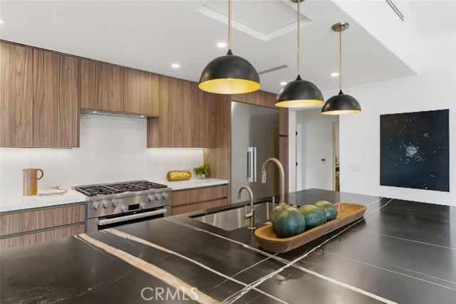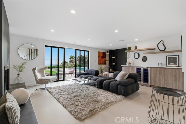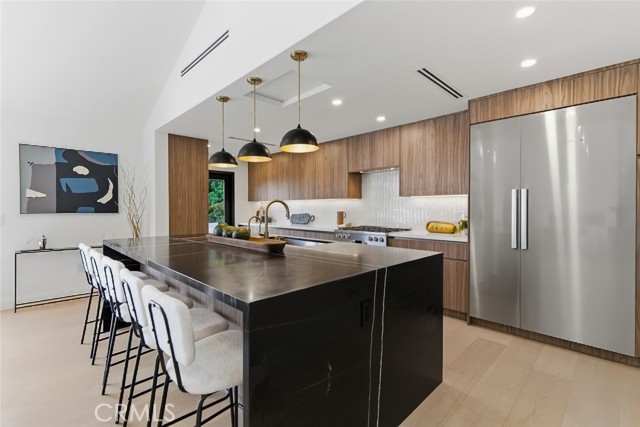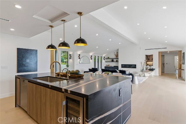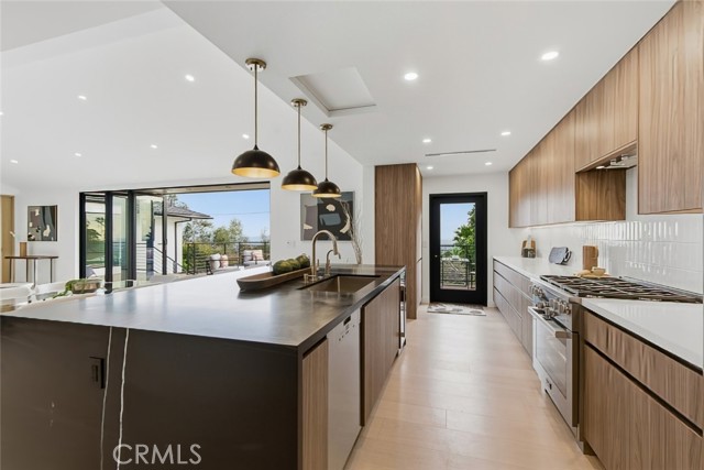 The expansive open floor plan features bright living areas, recessed lighting, and seamless indoor outdoor flow ideal for both everyday living and entertaining. The chef inspired kitchen is a true centerpiece, highlighted by an oversized island, premium Miele appliances, abundant cabinetry, and a dedicated pantry for added storage and convenience. A separate laundry room enhances everyday functionality.